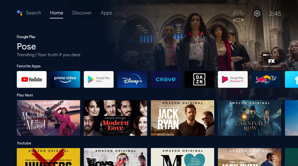 - Kho ứng dụng phong phú với nhiều ứng dụng quen thuộc với mọi người như: Clip TV, FPT Play, Google Play, Netflix, VieON, YouTube,... Bạn còn có thể tải thêm các ứng dụng yêu thích khác từ Google Play tiện lợi.