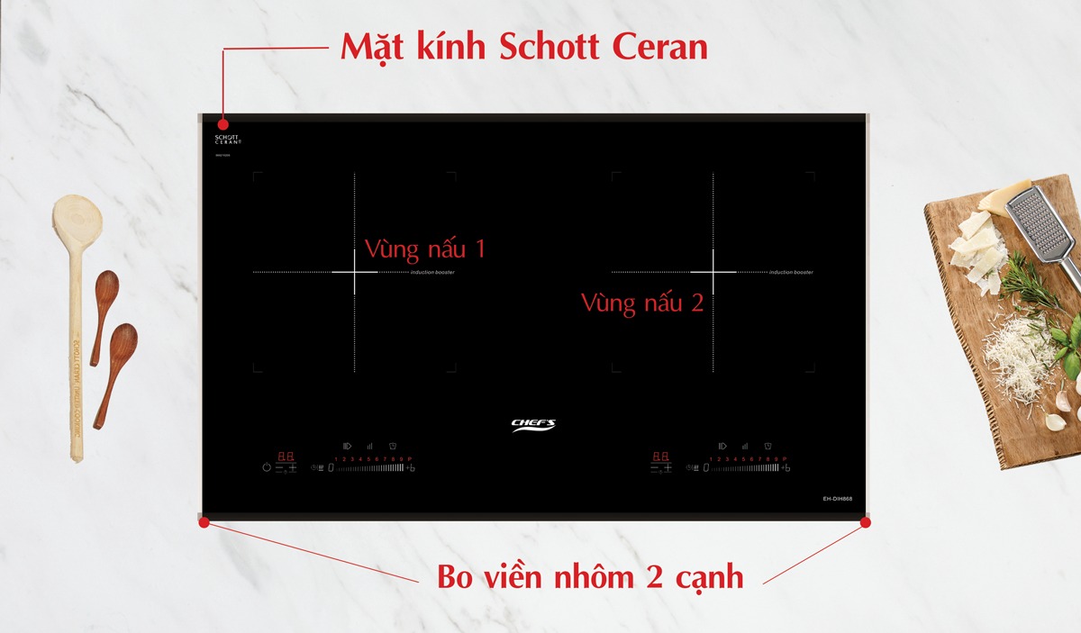 - Bếp từ Chef's EH-DIH868 là dòng nhập khẩu nguyên chiếc từ Tây Ban Nha với 2 vùng nấu từ được sản xuất theo dây chuyền hiện đại chuẩn Châu Âu, EH-DIH868 được đánh giá cao về thiết kế lẫn tính năng sử dụng.