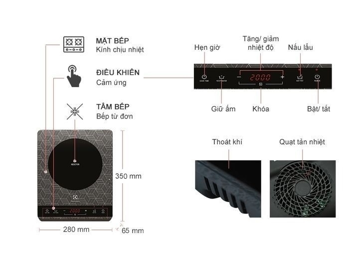 | Loại bếp | Bếp từ 1 vùng nấu |