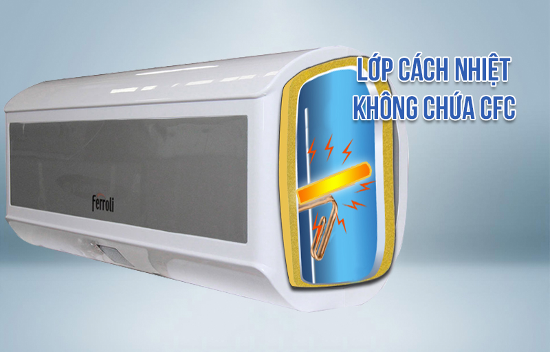 Lớp cách nhiệt kiểu mới không chứa CFC – là một hợp chất có khả năng gây phá hủy bầu khí quyển. Theo đó, lớp cách nhiệt của bình nóng lạnh này được tổng hợp từ một loại bọt có tên là Polyurethane. Chất bọt đậm đặc giúp ngăn cản tối đa sự trao đổi nhiệt của nước trong bình và môi trường bên ngoài. Cũng bởi khả năng này mà bạn và các thành viên khác trong gia đình có thể thoải mái dùng nước nóng cho dù bình đã được tắt từ lâu.