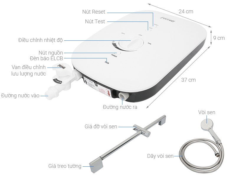 Cầu dao chống rò điện ELCB Bộ ổn định nhiệt TBST Hệ thống chống giật, chống bỏng TSS Vỏ chống thấm nước IPX4 |