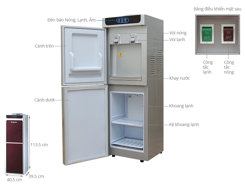 Có khoang lạnh bảo quản nước Khay hứng nước Có đèn báo nóng lạnh |