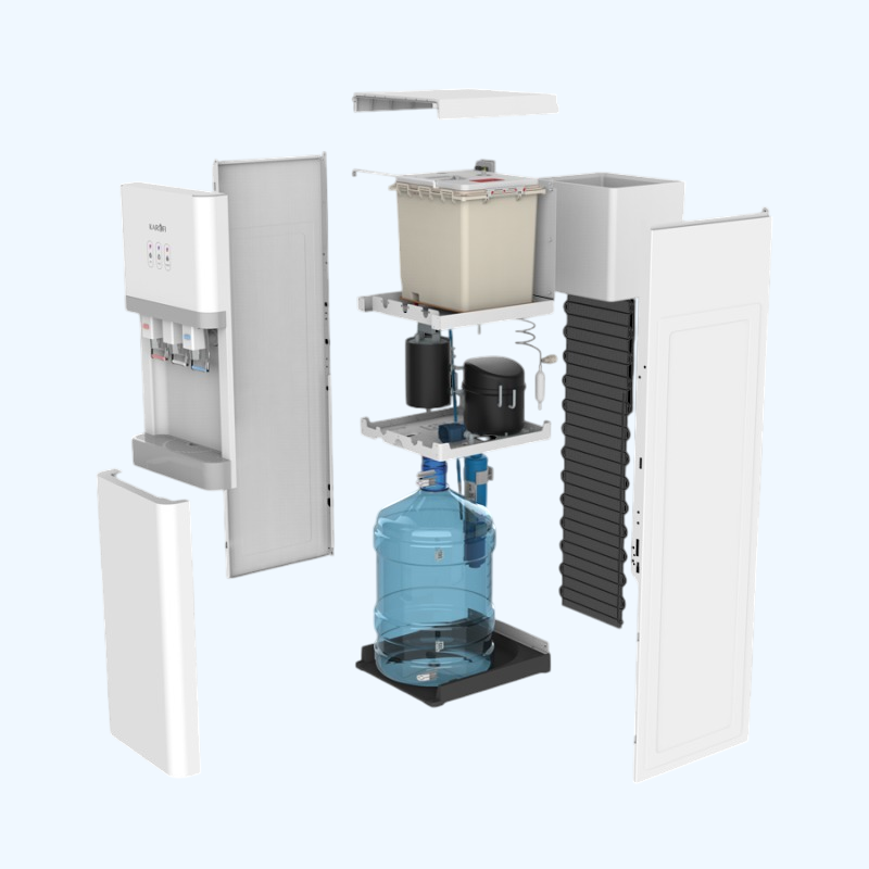 - Nếu cây nước úp bình khiến bạn cảm thấy "phiền phức" vì mang vác nặng nề, dễ đổ nước ra sàn dẫn đến nguy cơ gây hỏng hóc... thì giờ đây Karofi HCV208 sẽ hóa giải hoàn toàn những lo lắng đó. Thiết kế hút bình siêu tiện lợi (bình hút có thể tích 20L), được đặt âm trong phần thân máy, dễ dàng lắp đặt và di chuyển mang đến cho bạn những trải nghiệm tuyệt vời hơn.