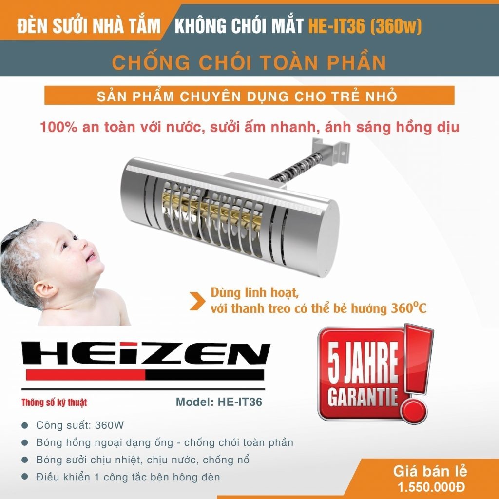 Đèn sưởi cho bé – đèn sưởi không chói mắt HEIT36 là dòng đèn sưởi tắm cho bé chống chói duy nhất có khả năng điều chỉnh góc chiếu 360 độ! Là dòng đèn sưởi cao cấp, thích hợp với những khách hàng muốn sử dụng những sản phẩm bền, đẹp, an toàn và đặc biệt thích hợp với những gia đình có trẻ nhỏ.