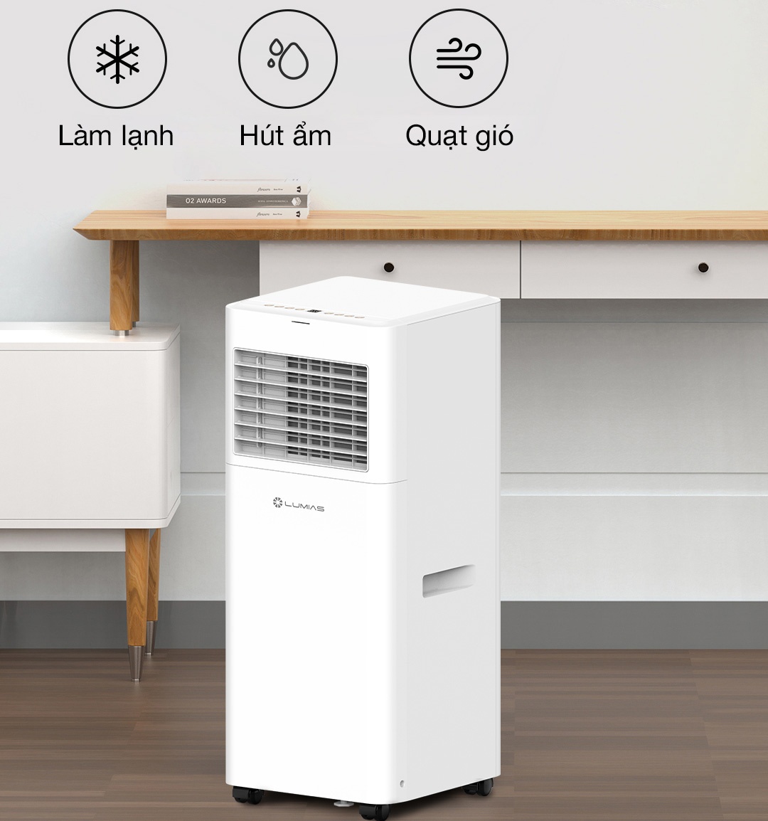 - Máy điều hòa di động Lumias PAC-26 được thiết kế để hoạt động êm ái, không gây tiếng ồn lớn, đảm bảo không gian yên tĩnh cho giấc ngủ và làm việc. Độ ồn được kiểm soát tốt, giúp không gian sống của bạn luôn dễ chịu và không bị ảnh hưởng bởi tiếng động của máy.