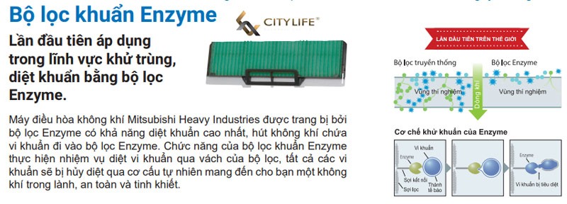 + Loại enzyme tính kiềm tự nhiên được trang bị vào Điều hòa Mitsubishi Heavy SRK18CTR-S5 sẽ tấn công vào giáp bào của khuẩn trùng tại ô bẫy vi sinh trên bộ lọc và tiêu diệt đến 99% vi khuẩn gây hại.
