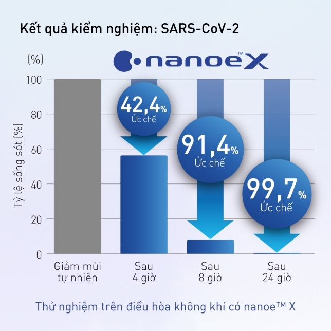 Công nghệ nanoe™ X với những lợi ích của gốc hydroxyl giúp ức chế hiệu quả các chất ô nhiễm bám trên bề mặt và trong không khí, đồng thời giảm các loại mùi thường gặp để đem lại bầu không khí sạch sẽ và trong lành. Chế độ nanoe™ có thể BẬT độc lập (mà không bật chế độ làm mát) với mức tiêu thụ năng lượng thấp 25 W/giờ* giúp lọc không gian sống liên tục, đem lại không gian sạch sẽ và thoải mái hơn cho bạn và gia đình - biến ngôi nhà của bạn trở thành một không gian sống an toàn 24/7.