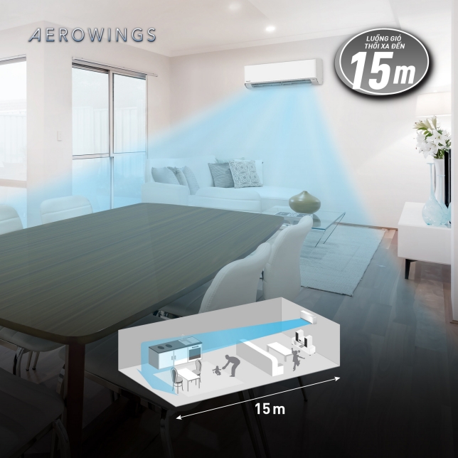 - AEROWINGS thổi luồng gió xa lên tới 15 mét* bằng cách kết hợp hai cánh đảo gió được điều khiển độc lập, bạn có thể tận hưởng cảm giác mát lạnh ngay cả khi bạn ở phía bên kia phòng.