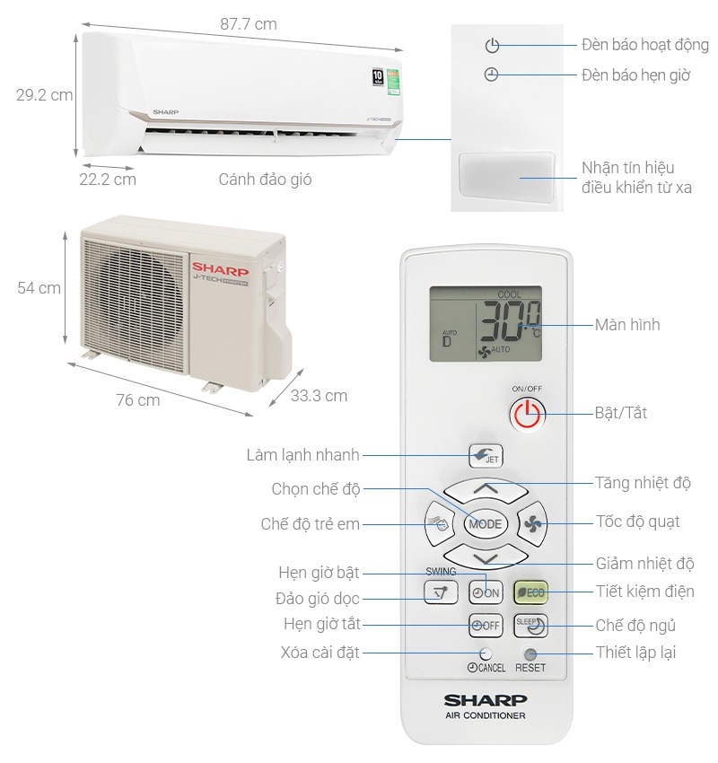 - Máy lạnh Sharp có 7 tính năng bảo vệ