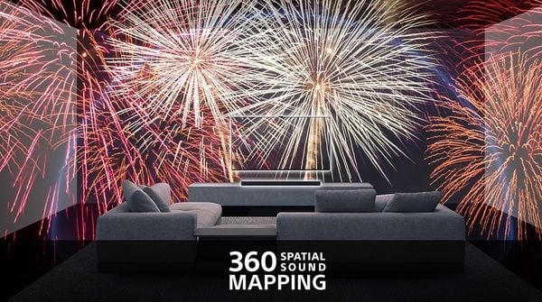 - Acoustic Center Sync giúp tivi trở thành loa trung tâm và công nghệ 360 Spatial Sound Mapping mang đến âm thanh điện ảnh sống động khi các công nghệ kết hợp với loa thanh Sony, cho không gian thêm tưng bừng, phấn khởi.