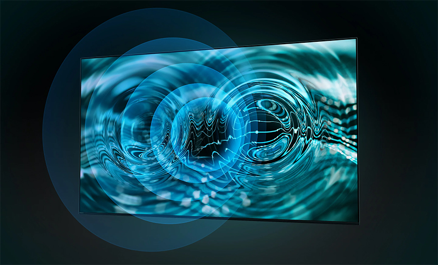 - Công nghệ Acoustic Surface Audio+ cho âm thanh phát ra từ màn hình thông qua bộ truyền động phía sau tivi. Nhờ đó âm thanh sẽ hoàn toàn khớp với hành động, người dùng sẽ cảm nhận đủ đầy các thước phim trên màn hình.