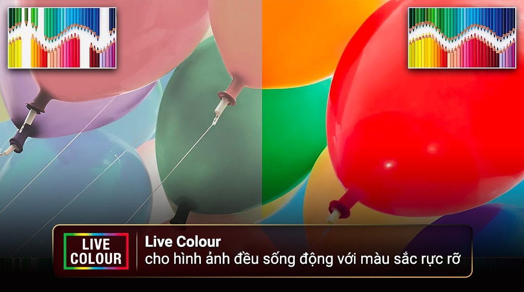 - Công nghệ tạo màu Live Colour giúp tối ưu hóa bộ lọc màu, mang lại không gian màu rộng hơn, giúp hình ảnh chuyển động chân thật, có màu sắc tươi sáng.