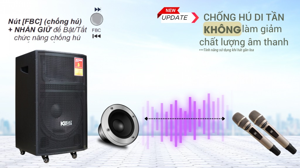 Chức năng chống hú di tần giúp giảm hoặc loại bỏ hiện tượng hú di tần không mong muốn, mà thường xuất hiện khi âm thanh từ loa được tái tạo và tác động lại vào microphone của thiết bị. Chức năng này thường được sử dụng để cải thiện chất lượng âm thanh và tránh những tiếng ồn không mong muốn trong quá trình sử dụng. Giảm hoàn toàn hiện tượng rú rít trong không gian hẹp thậm chí ngồi cạnh loa mà không làm giảm chất lượng âm thanh của tiếng hát.