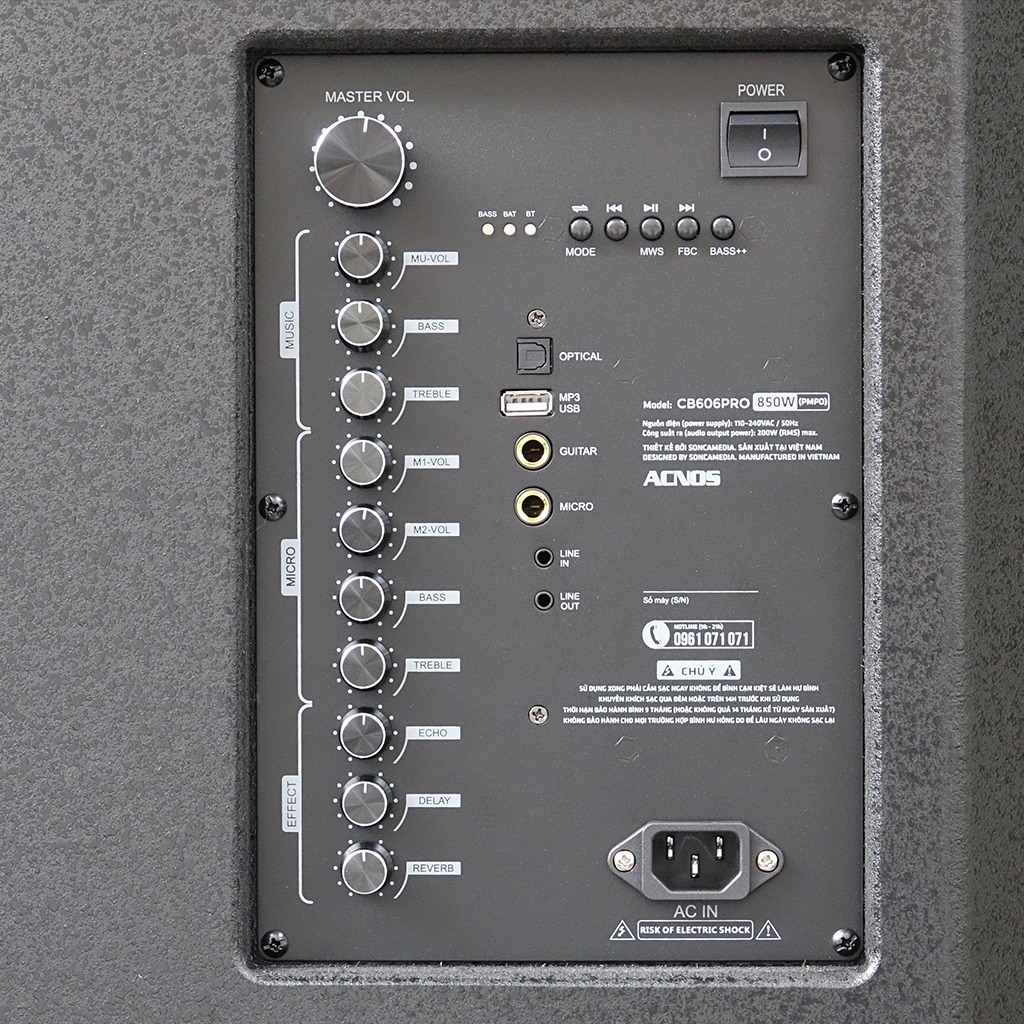 - Loa kéo Acnos CB606PRO hoạt động ở mức công suất liên tục 200W và cực đại có thể lên đến 850W, mang lại trải nghiệm âm thanh sống động và mạnh mẽ nhất.