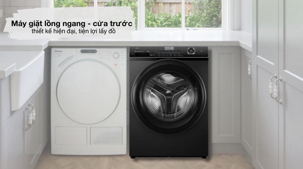 - Máy giặt Aqua Inverter 12 kg AW12-BP4959U1K(B) gây ấn tượng ngay từ cái nhìn đầu tiên nhờ vào thiết kế máy giặt lồng ngang, cửa trước với tone màu đen trung tính. Kiểu dáng hiện đại này không chỉ tôn lên vẻ đẹp sang trọng cho không gian nội thất mà còn mang lại sự tiện lợi trong quá trình sử dụng.