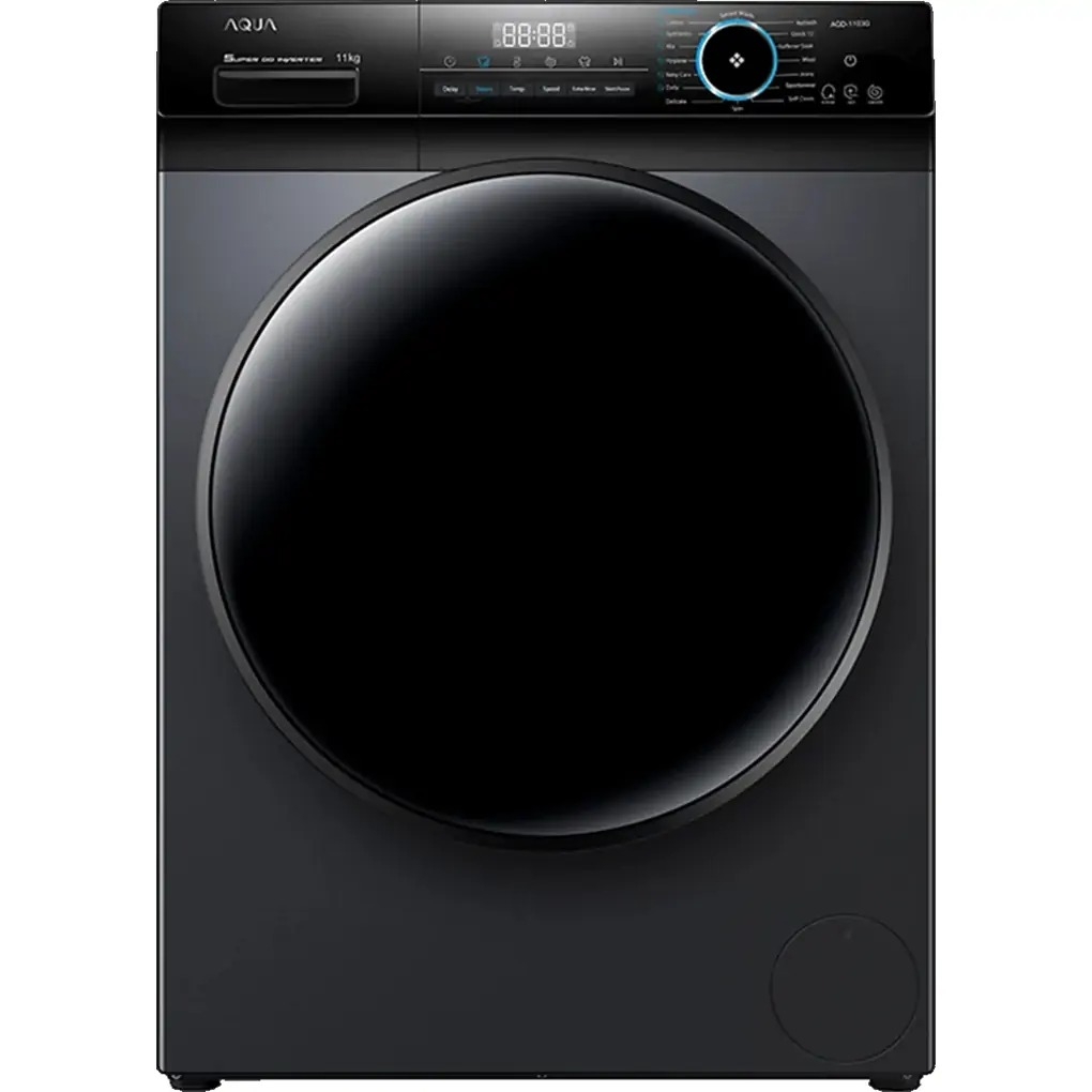 - Máy giặt AQUA Inverter lồng ngang 11 Kg AQD-D1103G.BK với khả năng giặt sạch, kháng khuẩn vượt trội nhờ rất nhiều các chương trình được cài đặt trong máy, phục vụ đa dạng cho các loại vải.