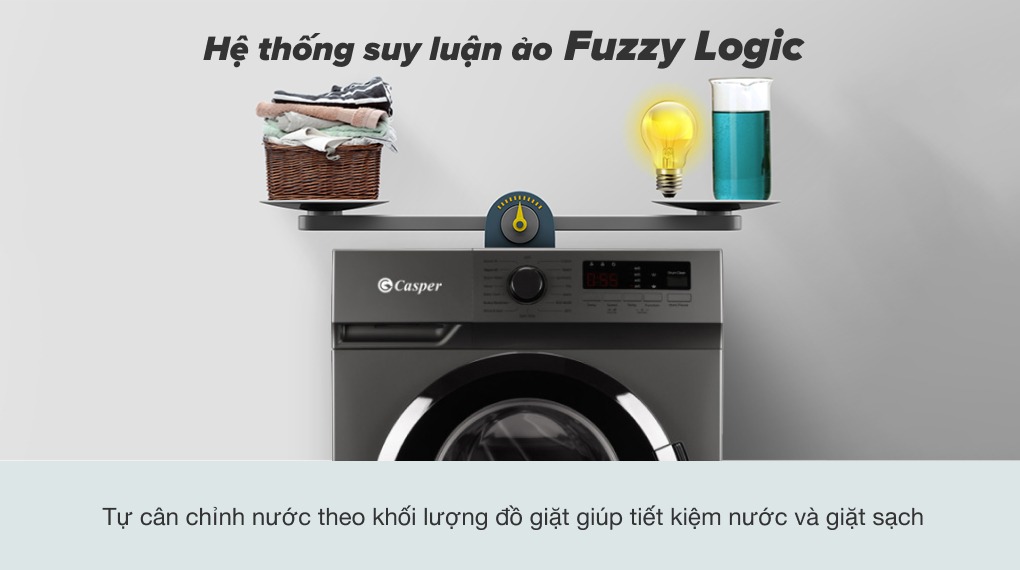 - Công nghệ suy luận ảo Fuzzy Logic: Giúp cho máy giặt tự cân chỉnh lượng nước và chất giặt tẩy trong quá trình giặt, giúp máy giặt có được khả năng làm sạch tối ưu mà vẫn tiết kiệm được điện, nước và thời gian.