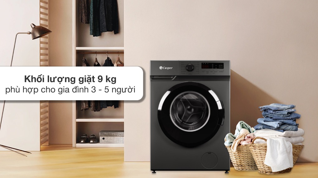 - Khối lượng giặt 9 kg lựa chọn phù hợp cho các hộ gia đình từ 4 - 6 thành viên hoặc gia đình ít người hơn nhưng có thói quen dồn đồ để giặt mỗi tuần một lần.