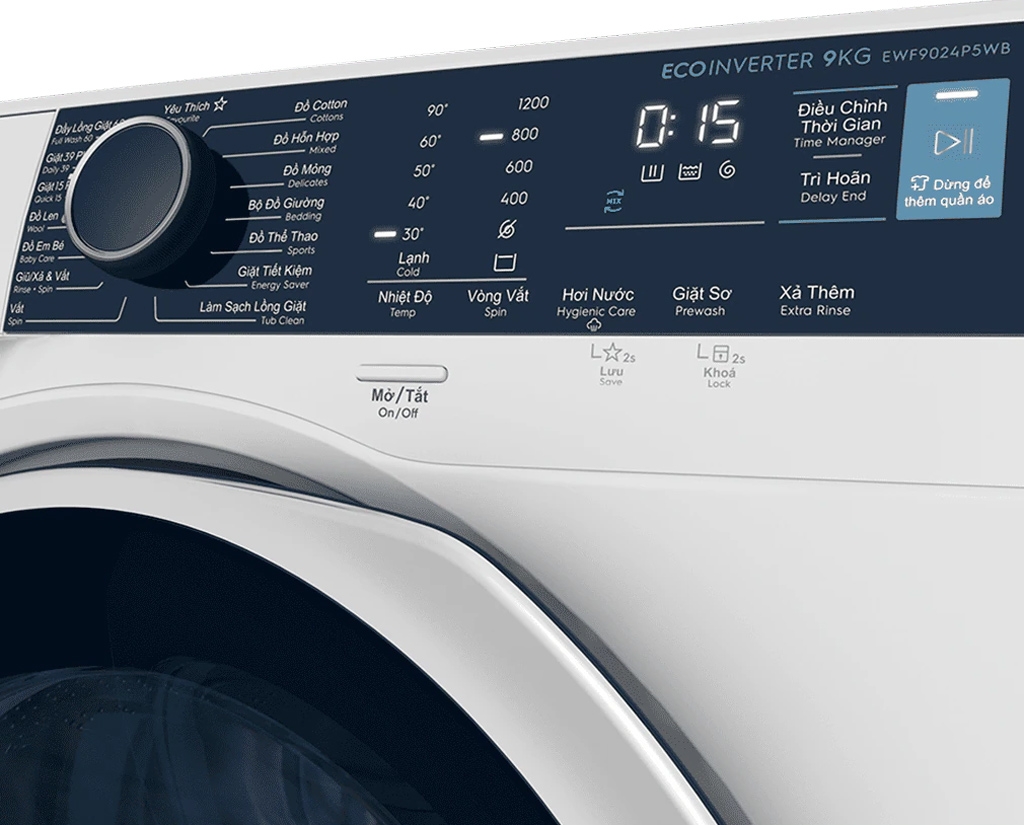 - Máy giặt Electrolux Inverter 9 kg lồng ngang EWF9024P5WB được thiết kế với 15 chương trình giặt đa dạng như: Chế độ yêu thích, giặt chăn ga, giặt nhanh 15 phút, giặt nhanh 39 phút, giặt tiết kiệm, làm đầy lồng giặt 60 phút, vắt, vệ sinh lồng giặt, xả + vắt, đồ cotton, đồ hỗn hợp, đồ len, đồ mỏng, đồ thể thao, đồ trẻ em. Máy giặt Electrolux sẽ giúp bạn linh hoạt sử dụng các chế độ phù hợp với lượng quần áo hàng ngày cũng như chất liệu vải.