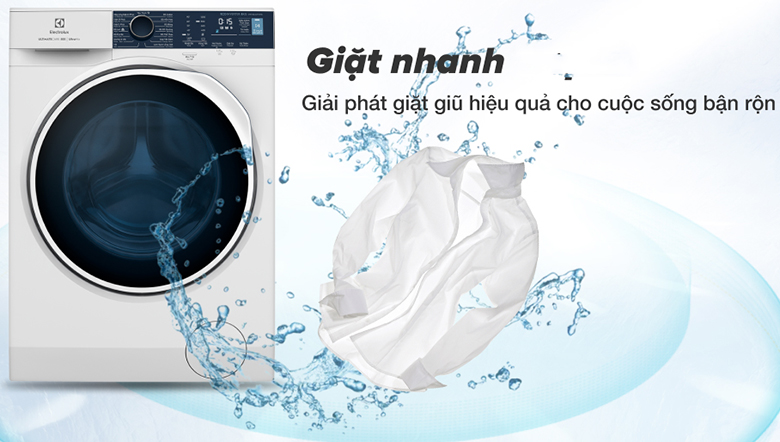 - Máy giặt Electrolux Inverter 10 kg EWF1043R7WC được trang bị thêm chế độ giặt nhanh giúp đáp ứng nhu cầu và lịch trình của người dùng. Bạn có thể giặt sạch nhanh chóng với lượng quần áo mỏng nhẹ hoặc các món riêng lẻ chỉ trong vòng 15 phút. Với chương trình giặt 39 phút phù hợp khi giặt đồ bẩn mỗi ngày.