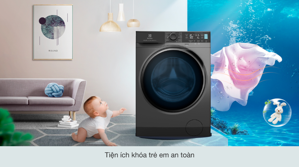 | Tiện ích | Điều khiển máy giặt từ xa thông qua ứng dụng Electrolux Vệ sinh lồng giặt Thêm quần áo khi máy đang giặt Lưu chương trình yêu thích Làm mới quần áo Refresh Cycle Khóa trẻ em Hẹn giờ giặt Chỉnh số vòng vắt Chỉnh mức độ nước Màn hình tích hợp cảm ứng TFT Loại bỏ vết ố Stain Pro Hygienic Care - Diệt khuẩn sau mỗi lần giặt |