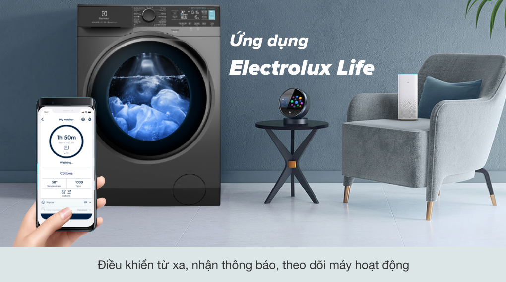- Bằng cách sử dụng ứng dụng Electrolux Life, người dùng có thể linh hoạt điều khiển máy giặt tại nhà cũng như theo dõi các chu trình giặt.