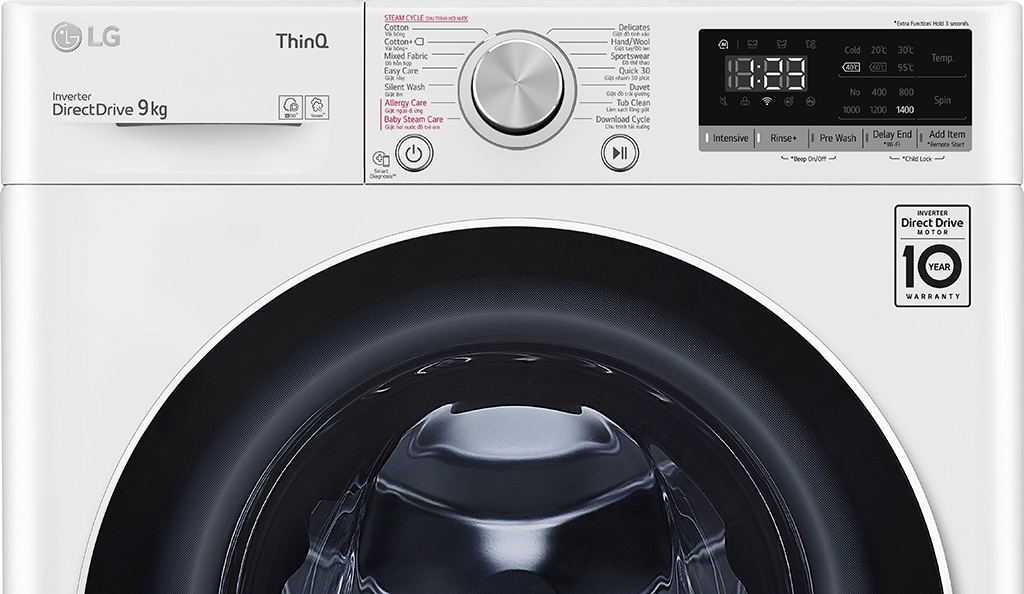 | Tiện ích | Hẹn giờ giặt Khóa trẻ em Thêm đồ trong khi giặt Vệ sinh lồng giặt Cho phép điều khiển máy giặt từ xa qua ứng dụng SmartThinQ Giặt hơi nước |
