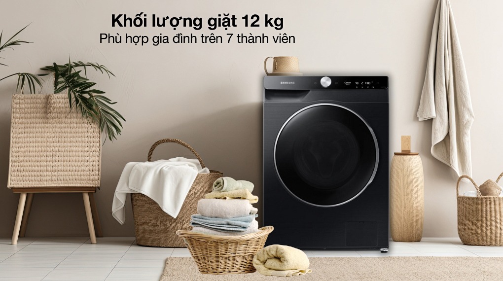- Máy giặt Lồng ngang Samsung Inverter 12 kg WW12CGP44DSBSV có khối lượng giặt 12 kg, phù hợp cho gia đình trên 7 thành viên.