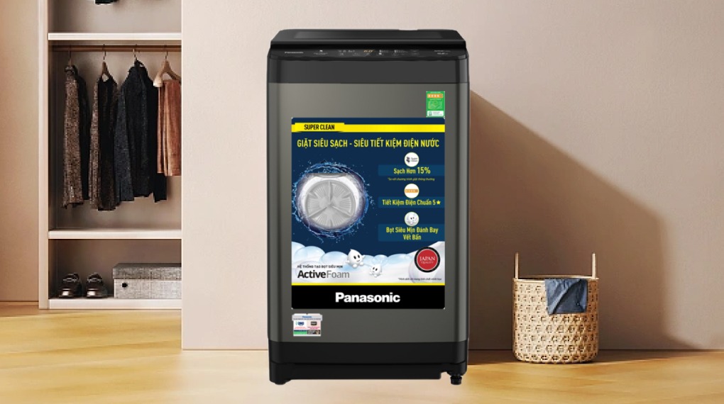 - Máy Giặt Panasonic 10 Kg NA-F10S10BRV là giải pháp hoàn hảo cho nhu cầu giặt giũ hằng ngày trong gia đình. Máy được trang bị công nghệ Active Foam có khả năng tạo ra lớp bọt mịn giúp loại bỏ vết bẩn hiệu quả. Ngoài ra, khi sử dụng chế độ giặt siêu sạch quần áo còn được làm sạch hiệu quả hơn 15%. Đồng thời, máy cũng đạt chuẩn 5 sao về khả năng tiết kiệm điện hiệu quả. Cùng tìm hiểu chi tiết hơn về chiếc máy giặt Panasonic này nhé!