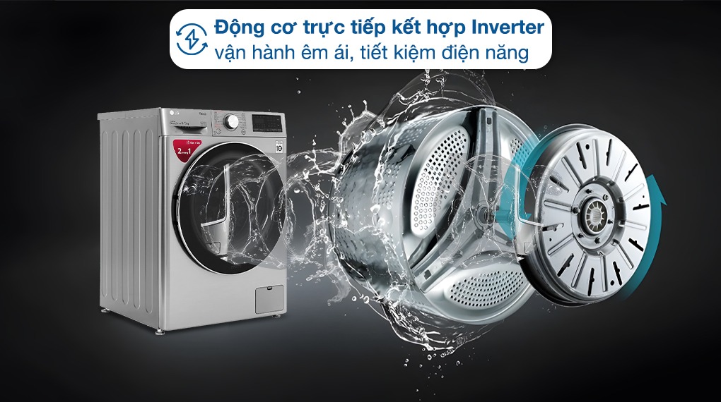 - Công nghệ Inverter mang lại hiệu quả tiết kiệm điện và nước trong mỗi chu trình giặt khi có khả năng điều chỉnh vòng quay của máy nén hoạt động một cách hiệu quả. Đồng thời, máy cũng kết hợp thêm động cơ truyền động trực tiếp giúp máy hoạt động êm ái, bền bỉ hơn.