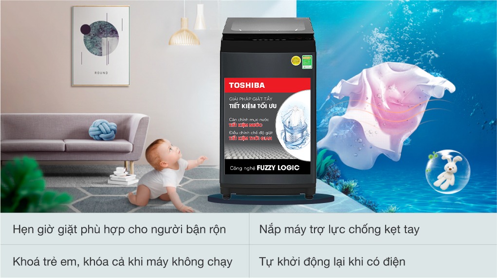 - Máy Giặt Toshiba 8 Kg AW-M905BV(MK) hỗ trợ công việc giặt giũ hàng ngày với công nghệ ấn tượng, tính năng hiện đại như công nghệ suy luận ảo Fuzzy Logic, lồng giặt ngôi sao pha lê, nắp kính cường lực bo tròn với hỗ trợ đóng chậm, hẹn giờ giặt, khóa trẻ em, vệ sinh lồng giặt.