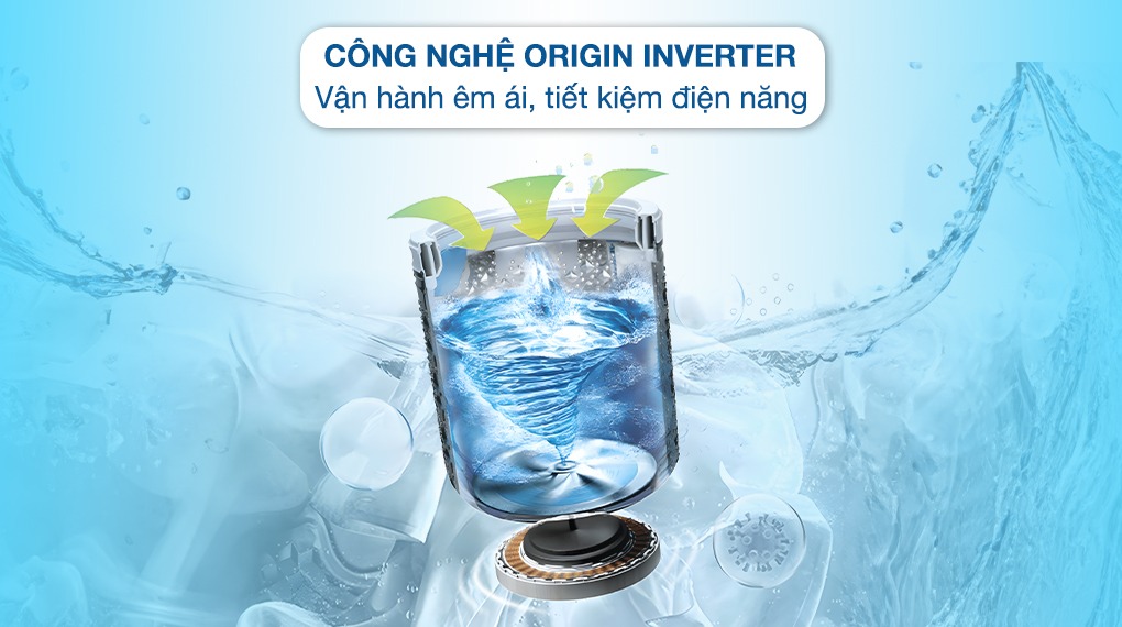 - Máy giặt Toshiba 12 Kg lồng ngang TW-T21BU130UWV(MG) sử dụng công nghệ Origin Inverter nên có khả năng điều chỉnh vòng quay của động cơ, giúp lồng giặt hoạt động hiệu quả với việc dùng điện và nước sao cho tiết kiệm nhất mà vẫn đạt được khả năng giặt tẩy sạch quần áo tối ưu.