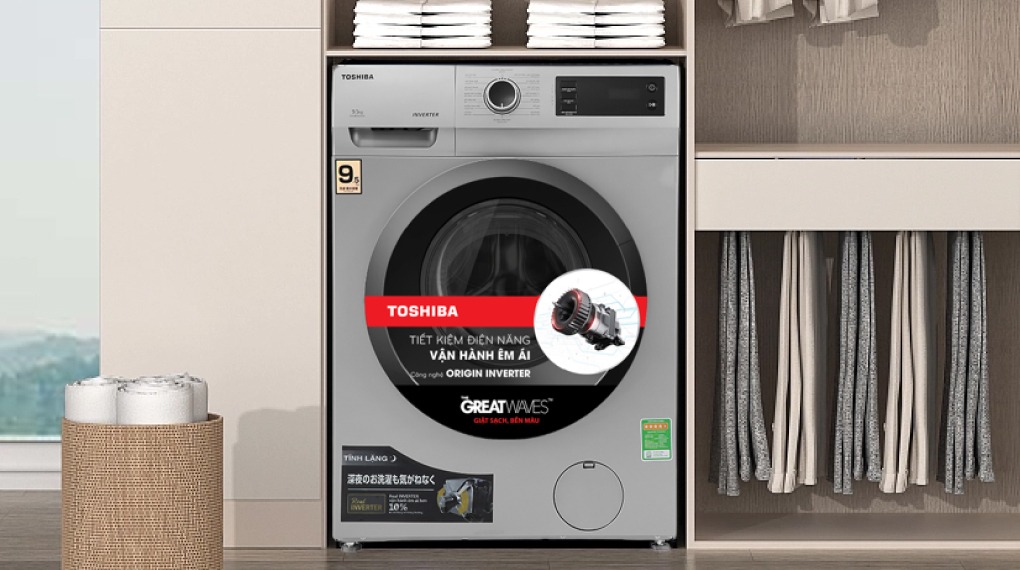 - Máy giặt Toshiba 9.5 Kg lồng ngang TW-BK105S3V(SK) sử dụng công nghệ Origin Inverter nên có khả năng điều chỉnh vòng quay của động cơ, giúp lồng giặt hoạt động hiệu quả với việc dùng điện và nước sao cho tiết kiệm nhất mà vẫn đạt được khả năng giặt tẩy sạch quần áo tối ưu.