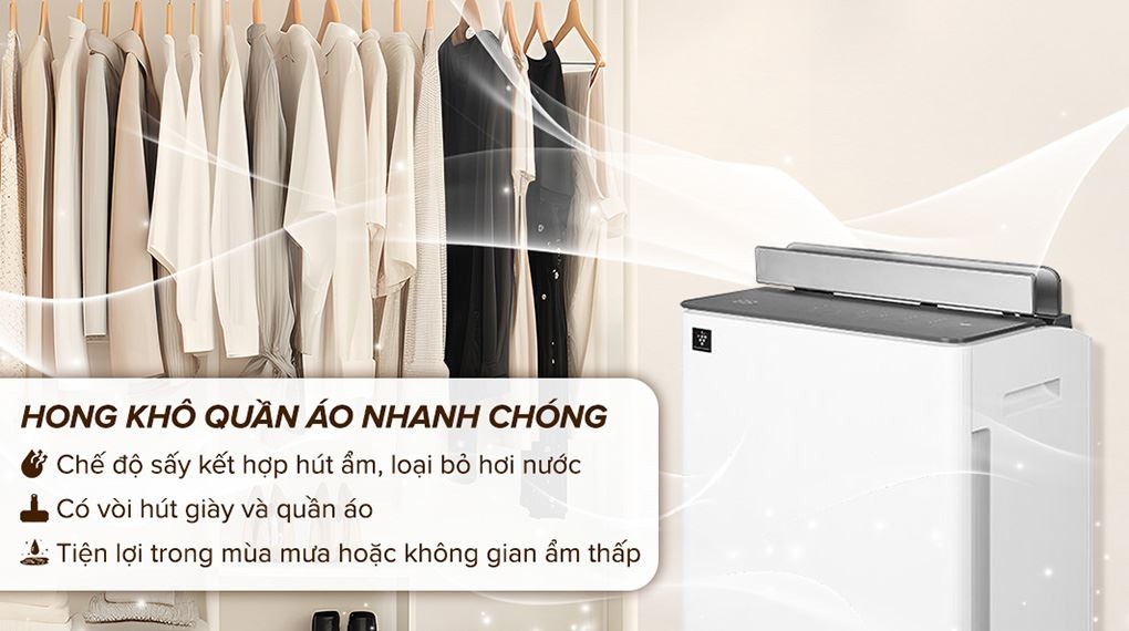 - Máy hút ẩm kết hợp lọc không khí Sharp DW-T30FV-W là phiên bản mới ra mắt với màu trắng trang nhã của dòng máy hút ẩm đa năng tích hợp công nghệ Plasmacluster ion độc quyền từ Sharp. Máy không chỉ kiểm soát độ ẩm hiệu quả mà còn lọc sạch không khí và hỗ trợ sấy khô quần áo nhanh chóng, đáp ứng tối đa nhu cầu sử dụng trong những ngày thời tiết ẩm hoặc mưa kéo dài.