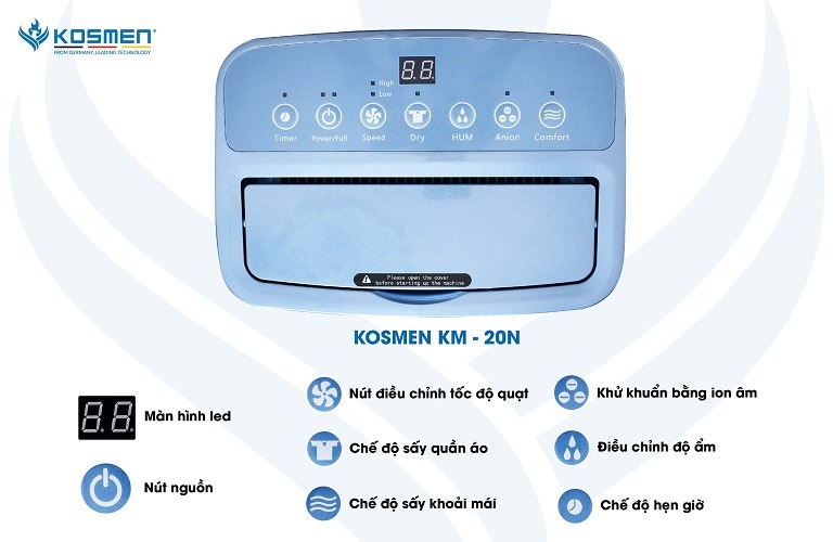 - Máy hút ẩm Kosmen KM-20N ứng dụng công nghệ hiện đại, thiết kế tinh tế với nhiều tính năng thông minh. Là sự lựa chọn hàng đầu dành cho nhiều gia đình khi mùa nồm đến gần.