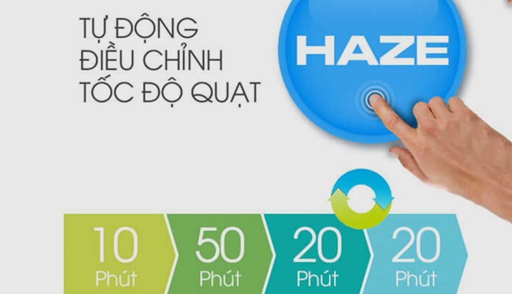 - Chế độ Haze của máy lọc không khí Sharp FP-J30E-B cho phép thiết bị tự vận hành quạt tốc độ cao trong 60 phút đầu tiên. Sau đó, máy sẽ chuyển sang hoạt động luân phiên giữa tốc độ thấp và cao trong 20 phút tiếp theo nhằm tăng hiệu quả lọc khí và giải phóng Plasmacluster ion nhanh chóng. Nhờ vậy nấm mốc sẽ bị loại bỏ và sự lây lan của vi khuẩn cũng bị ngăn chặn và người dùng có thể thoải mái tận hưởng cảm giác mát mẻ dễ chịu mà không cảm thấy khó chịu vì những mùi hôi có trong không gian quanh bạn