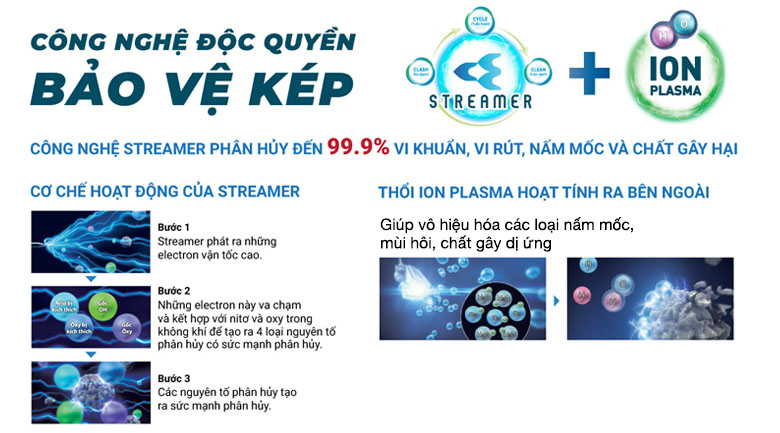 2. Khả năng lọc khí tối ưu nhờ công nghệ độc quyền bảo vệ kép Streamer và Ion Plasma
