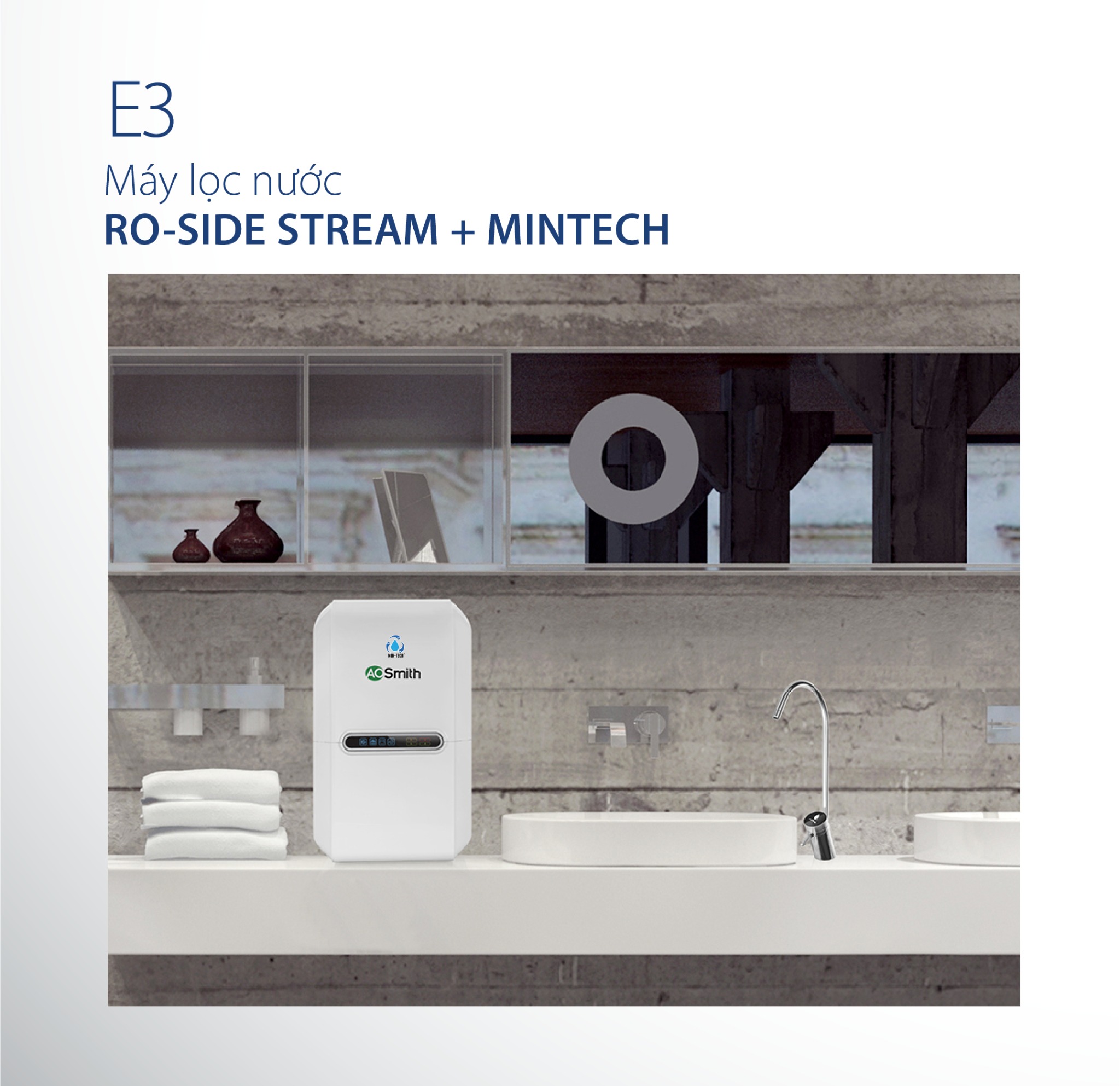 - A. O. Smith E3 là dòng máy lọc nước của thương hiệu A. O. Smith. Sản phẩm được thiết kế dạng để gầm rất tiết kiệm diện tích không gian sử dụng. Máy lọc nước linh hoạt sử dụng, dễ dàng đặt ở bất cứ góc nào trong nhà.