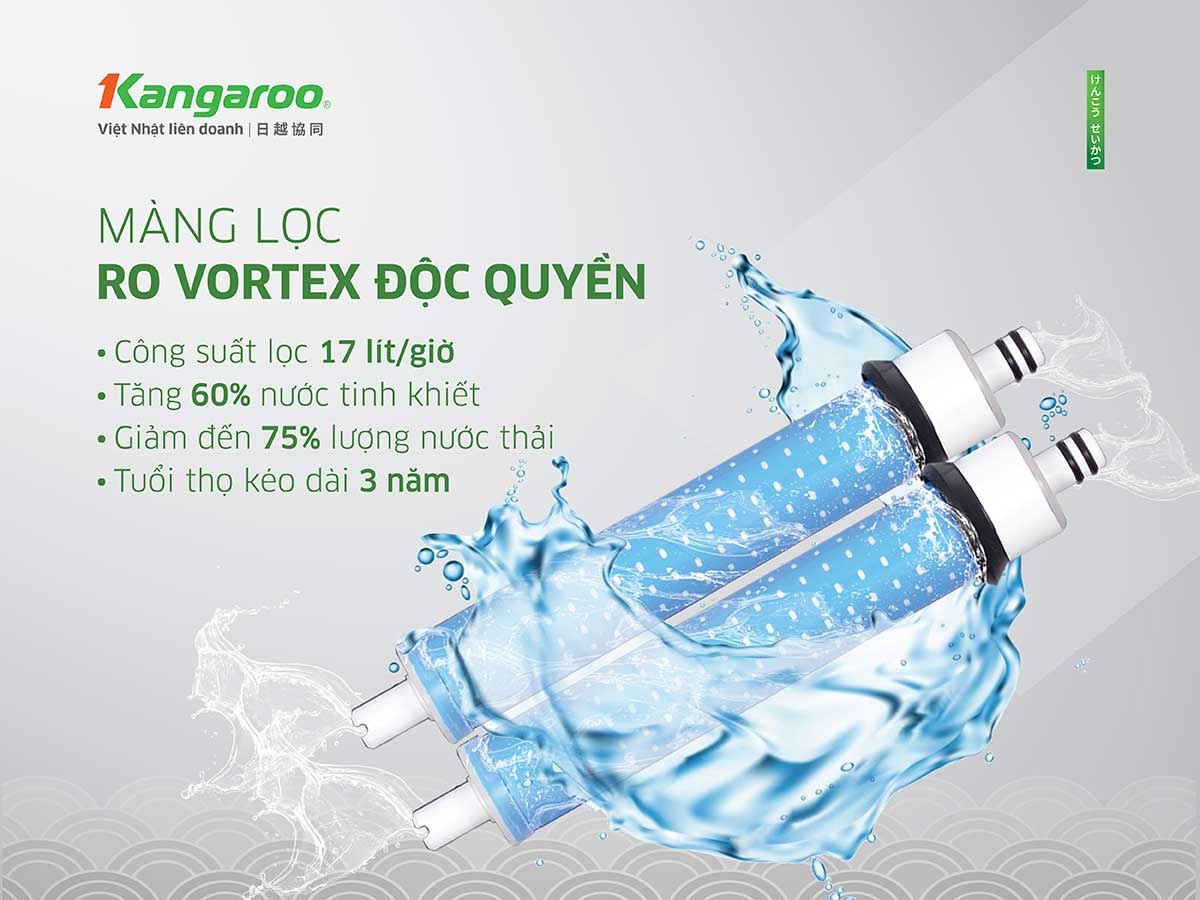 - Duy nhất Kangaroo có bằng sáng chế độc quyền thiết bị lọc nước Hydrogen. Nước Hydrogen tươi bổ sung vi khoáng tự nhiên và chất điện giải có lợi, giúp tăng cường miễn dịch và nước có vị ngon tự nhiên. Đồng thời hoạt động như một chất chống oxy giúp loại bỏ gốc tự do có hại gây lão hóa, các bệnh dạ dày…