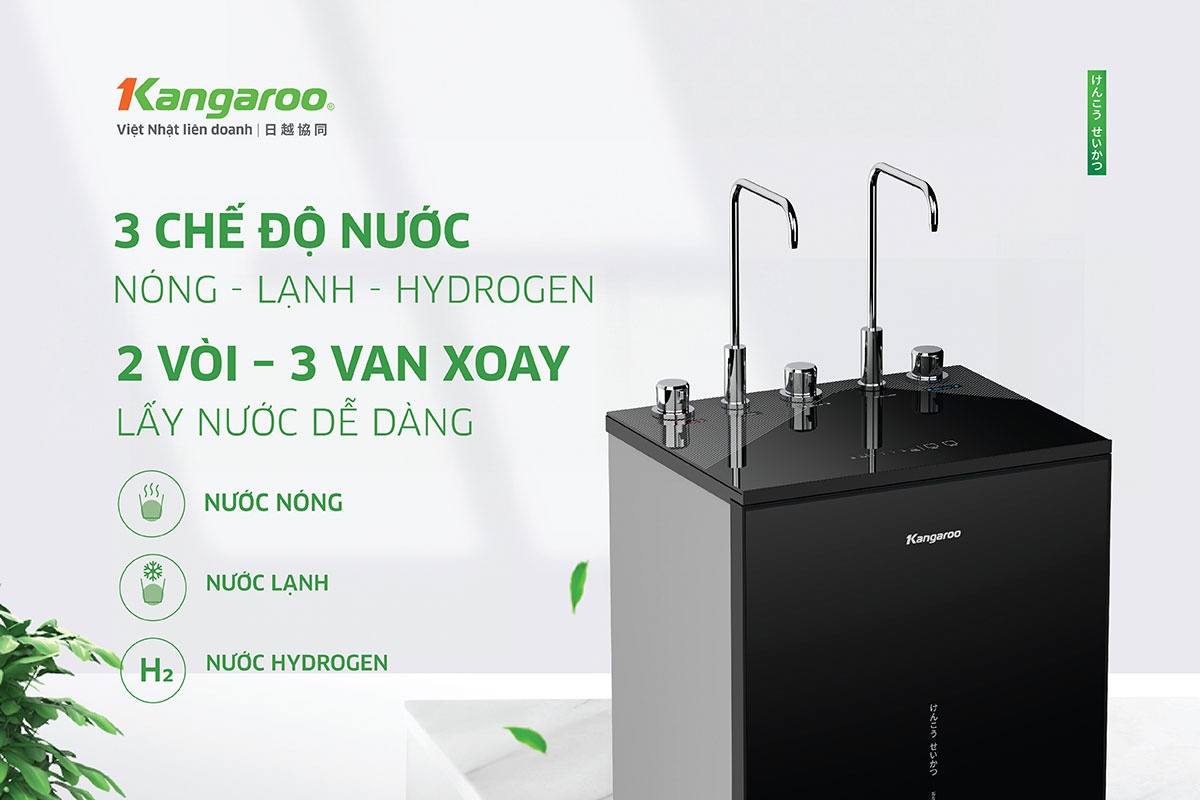 - Máy lọc nước nóng lạnh Kangaroo Hydrogen Infinity KGHC10V6 sử dụng công nghệ tạo nước Hydrogen ưu việt bằng khoáng gốm.