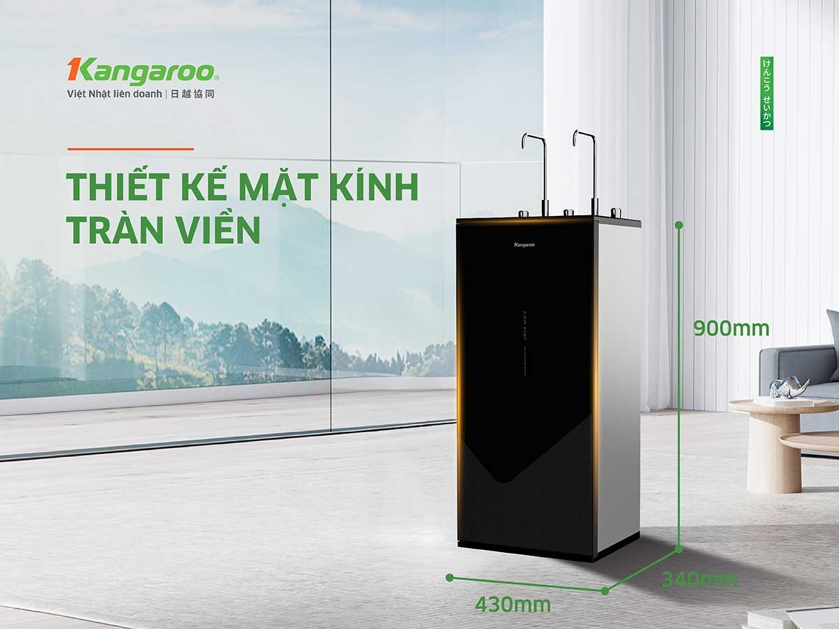 - Máy lọc nước Kangaroo Hydrogen Infinity nóng lạnh KGHC10V6 sở hữu thiết kế loại bỏ bo viền sang trọng, kết hợp cùng vật liệu kính gương mờ đẳng cấp. Tay nắm vật liệu Aluminum tạo hiệu ứng ánh kim đẹp mắt, tăng trải nghiệm khi sử dụng. Màu Champagne Gold dẫn đầu xu hướng nội thất hiện nay (sản phẩm có ánh kim nên màu sắc có thể thay đổi tùy thuộc vào ánh sáng môi trường).