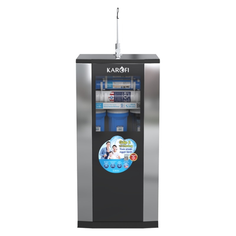 - Karofi ERO80 PRO được trang bị 10 lõi lọc công nghệ Smax siêu mạnh mẽ. Công nghệ này giúp Nhân đôi công suất - Gấp đôi tuổi thọ và tiết kiệm đến 71% lượng nước thải.