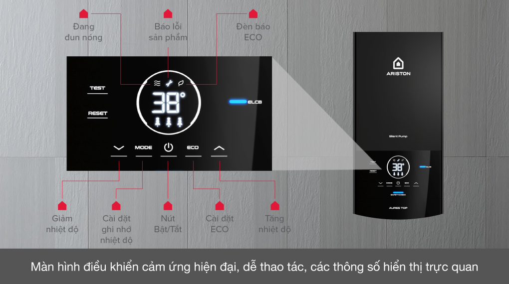 Màn hình điều khiển cảm ứng hiển thị nhiệt độ Tuỳ chỉnh công suất làm nóng Van điều chỉnh lưu lượng nước Vòi sen tích hợp Ag+ kháng khuẩn |