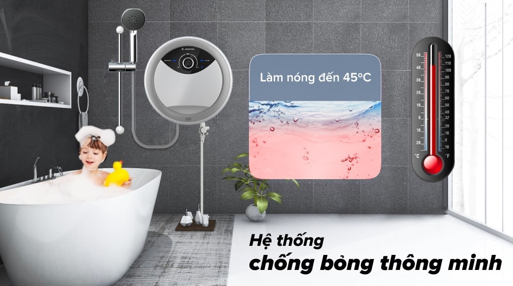 Hệ thống này của Ariston sẽ cảm ứng được nhiệt độ nước đầu vào, tự động ngắt tính năng làm nóng khi phát hiện nhiệt độ nước vượt quá mức nhiệt độ cài đặt. Hệ thống chống bỏng thông minh của máy nước nóng Ariston 4500W SMC45PE-VN sẽ chăm sóc an toàn cho làn da của bạn khỏi bị phồng rộp hoặc bỏng rát do nước quá nóng gây ra.