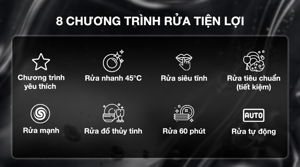 - Thiết bị làm sạch 14 bộ đồ ăn châu Âu trong 1 lần, tương đương số chén dĩa cho 4-5 bữa ăn của gia đình Việt, với số lượng bát đĩa lớn vậy nhưng mỗi lần rửa chỉ tiêu tốn ~ 9.5 lít nước, có hệ thống lọc 3 lớp giúp tối ưu lượng nước sử dụng, động cơ không chổi than tiết kiệm điện, giúp giảm chi phí điện và nước khi sử dụng máy rửa chén.