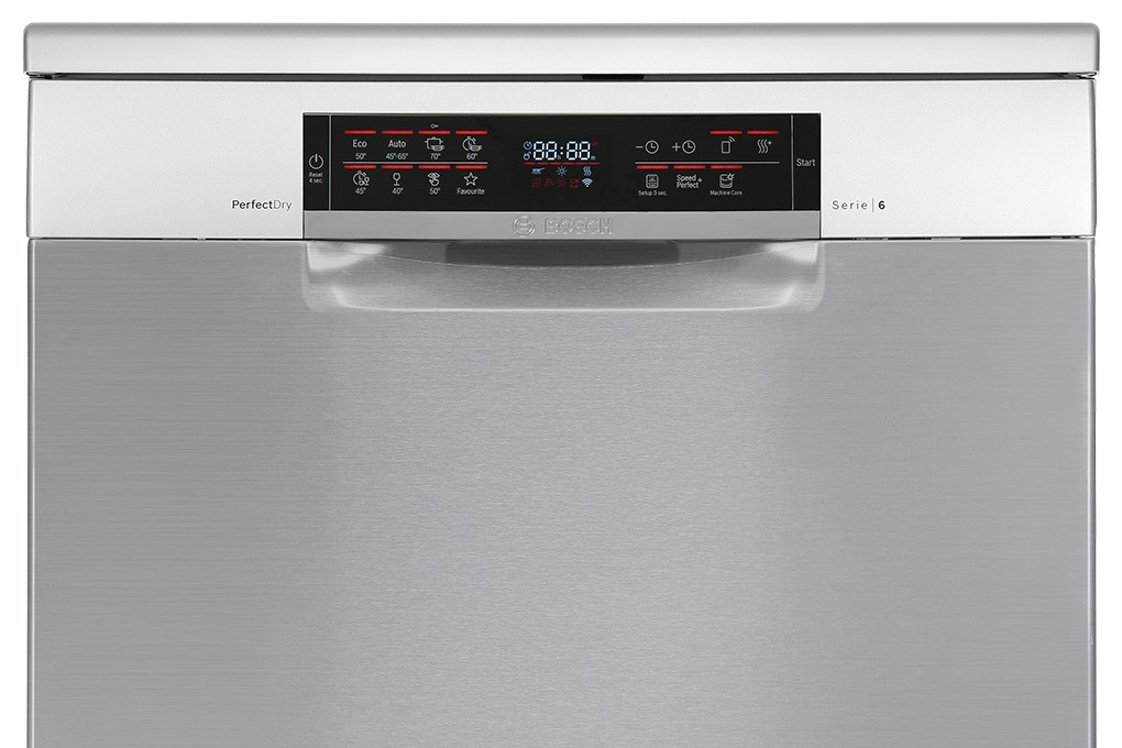 - Có thể bật tắt và điều khiển máy rửa bát SMS6ZCI49E Bosch từ xa thông quan ứng dụng Home Connect.