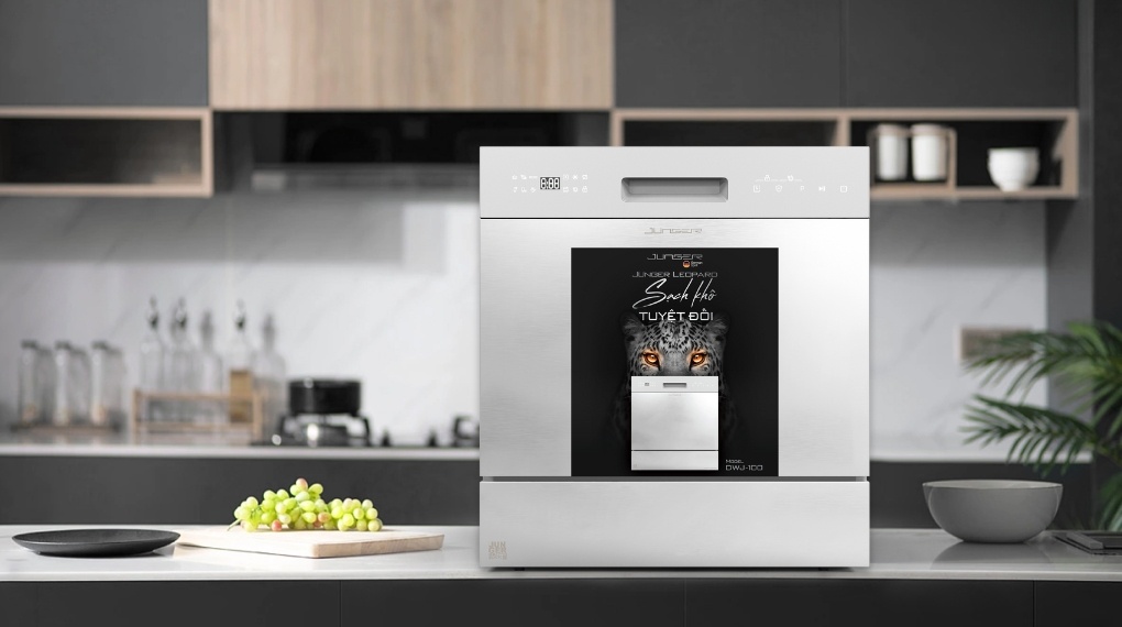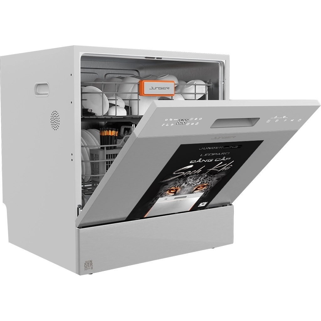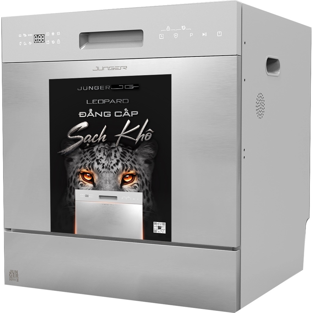- Máy rửa bát độc lập Junger Leopard DWJ-100, kiểu dáng lập phương gọn gàng, phù hợp lắp đặt tại nhiều không gian bếp khác nhau từ truyền thống đến hiện đại.