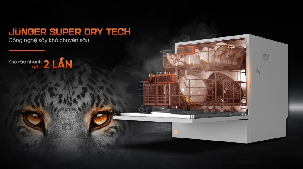 - Công nghệ sấy Junger Super Dry Tech sử dụng thanh gia nhiệt và nhiệt dư từ nước nóng để kết hợp với quạt gió tuần hoàn, làm khô nhanh chóng và tiết kiệm điện.