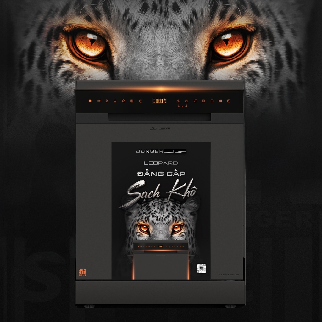 - Máy rửa bát Junger 15 bộ LEOPARD DWJ-183-VG sở hữu thiết kế sang trọng với sắc đen xám thời thượng, hiện đại và các đường nét vuông góc sắc sảo, tinh tế. Đây là dòng máy phù hợp với nhiều không gian nhà bếp khác nhau. Với thiết kế nổi bật, trang nhã và đẳng cấp, máy rửa bát Junger DWJ-143 là một lựa chọn hoàn hảo tô điểm cho không gian của bạn.