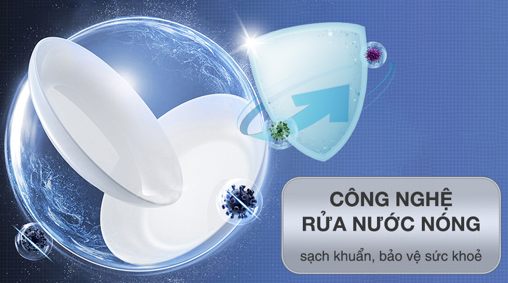 - Công nghệ rửa nước nóng đến 65 độ và giữ trong 10 phút trong lần rửa cuối cùng, giúp chén đĩa được làm sạch hiệu quả, loại bỏ những vết bẩn cứng đầu và hạn chế mùi hôi còn bám lại. Đặc biệt tính năng này sẽ giúp bảo vệ sức khoẻ cho cả gia đình, đặc biệt là trẻ nhỏ, khi có khả năng diệt khuẩn đến 99.99%.